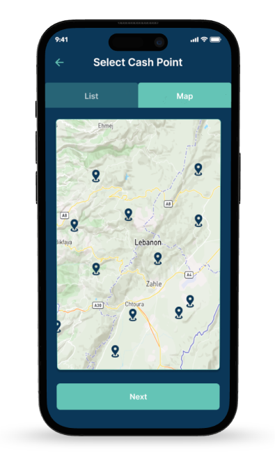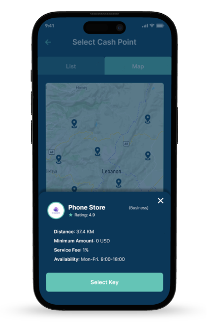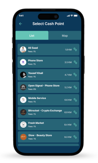 Nearby Shaheen users can locate you and request cash-in or cash-out services.
